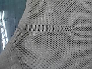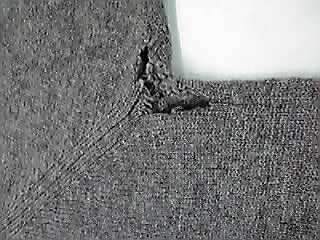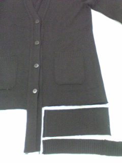 着丈詰め11センチ Aコースでのご依頼です。真ん中部分11センチを取り除いて 再度 裾リブ編み部分をつなぎあわせます。