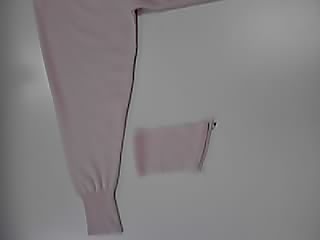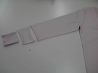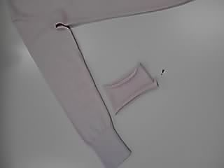 袖口ほつれ部分をカットして 折り返してミシン始末しました。袖丈が3センチくらい短くなりました。